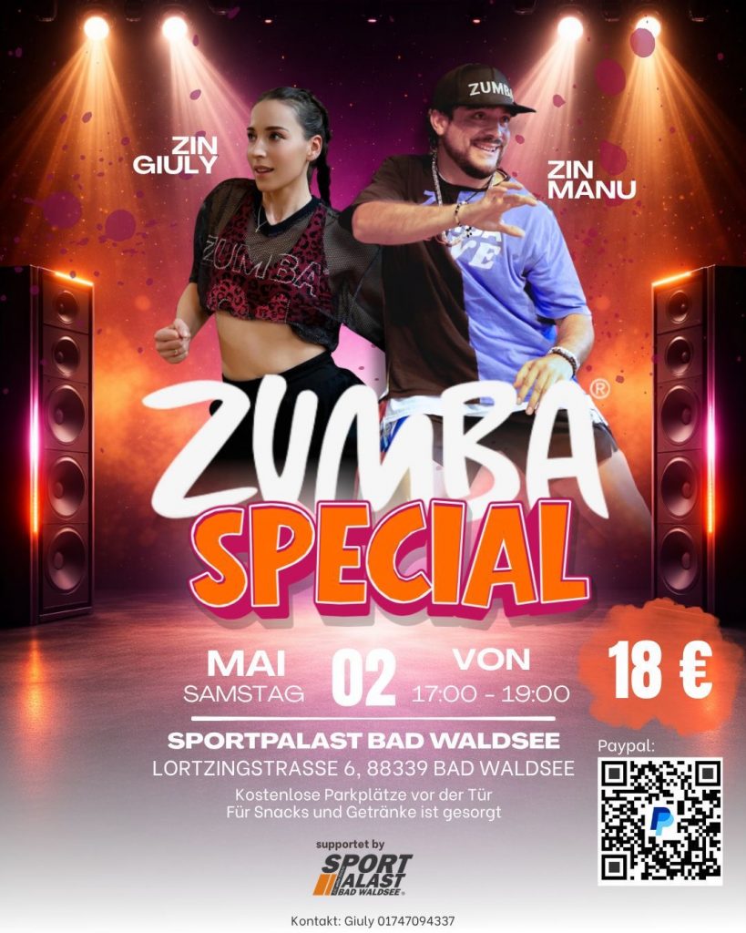 Erlebe ein energiegeladenes Zumba Special, das dich garantiert zum Schwitzen, Lachen und Tanzen bringt! Gemeinsam mit den beiden Top-Instruktoren Giuly und Manu erwartet dich ein unvergessliches Workout voller Beats, Motivation und guter Laune.